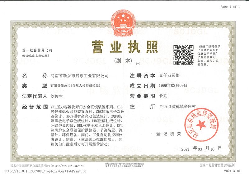 河南省新鄉市啟東工業有限公司始建于1987年,是專注研發、生產自動化儀器儀表(主要與壓力容器、鍋爐等容器配套使用)的廠家。主要產品有液位計(磁敏雙色型、磁翻柱型等)系列、烤包器熄火聯控裝置系列、壓力容器快開門安全聯鎖保護裝置系列、鍋爐報警器系列。二十多年來,公司產品暢銷國內并遠銷俄羅斯、蒙古與東南亞,深得廣大用戶的信賴和好評。我們多年來致力于自動化儀器儀表的研制生產,公司現具有完善的生產、試驗、檢測手段和設備??萍紕撔?、誠信服務,是我們不變的經營理念,我們將以強有力的技術支持及售后竭誠為客戶提供良好的服務。  2012年我公司成功研發了KCL系列烤包器熄火聯控裝置,并于2013年2月2日榮獲中華人民共和國國家知識產權局辦法的《實用新型**證書》<**號:2021202257735>該產品廣泛應用于唐鋼等大型鋼鐵企業,為烤包器安全作業提供了有力的保障。  2002年我公司成功研發磁敏電子雙色液位計獨特的高亮度LED紅綠雙色顯示,獲得了專家的首肯和用戶的一致好評。在此基礎上我公司研發人員十年磨一劍,致力于XQFB-1防爆型磁敏雙色液位計的研發,于2013年12月27日由國家防爆電器產品質量監督檢驗中心檢驗合格并頒發防爆合格證書<編號:cnex19.0883>。該產品性能得到了充分的發揮,廣泛應用于含有Ⅱ類A·B級T1-T4組可燃氣體或蒸汽與空氣混合形成的爆炸性混合物的0區、1區危險場所。連接用戶DCS或PLC系統實現遠距離集中顯示和控制,從而實現節能、數字化管理。為用戶增加了一定的經濟效益和社會效益,。2014年公司成功申請了夢潤儀表的logo,新的品牌新的形象,夢潤儀表是啟東的LOGO, 歡迎新老用戶前來洽談合作?! ∥覀円蝗缂韧刈⒅乜蒲械耐度?,憑借產品的不斷更新、加大科技含量,進一步拓展市場。我們相信品質成就未來,以過硬質量、優惠價格、完善的售后服務熱忱歡迎廣大客戶來我司視察指導、洽談業務;精誠合作,共創輝煌!